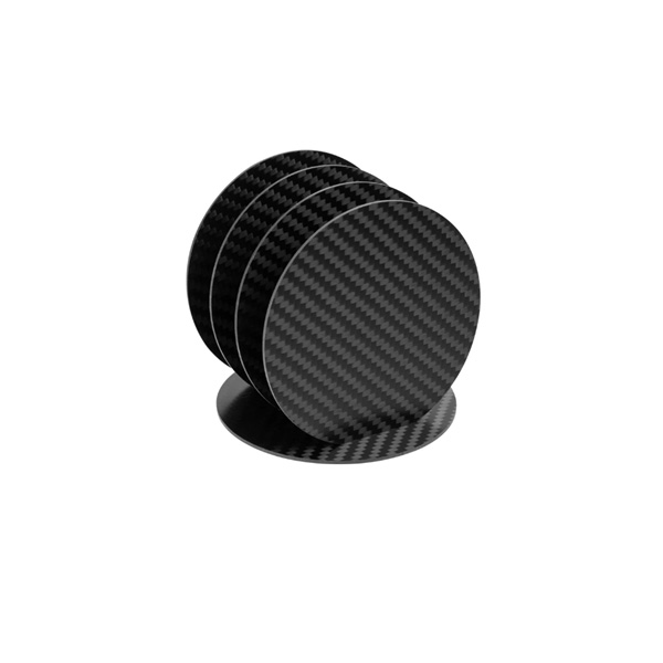 Next, let's take a look at this carbon fiber coaster. The compact and exquisite design not only adds a touch of modernity to your desktop,